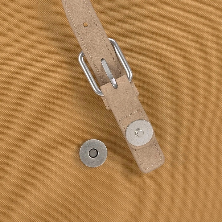 • унікальний дизайн, гарний антрацитовий колір (сіра підкладка з ніжним картатим візерунком), непомітні блискавки та чарівні, ідеально виконані деталі з м’якої бежевої замші (ремінець з магнітною застібкою, нашивка з логотипом та зовнішні ручки на блискавці);