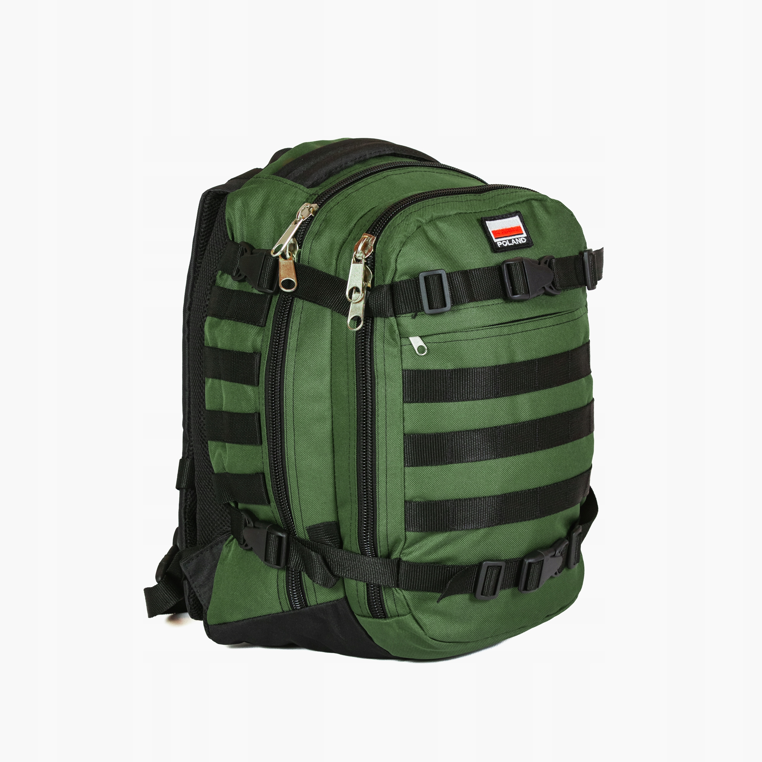 Міцний рюкзак із товстого абразивного матеріалу - стійкий матеріал. Рюкзак має дві окремі кишені та одну кишеню спереду. Завдяки такому розташуванню рюкзак місткий і функціональний - речі всередині завжди під рукою. Спереду має дві декоративні застібки. Великі навантаження на рюкзак не впливають негативно на поставу тіла завдяки жорсткій спинці та профільованим лямкам. Оснащений стегновим ременем, який також впливає на стабільність пози тіла та зручність використання.