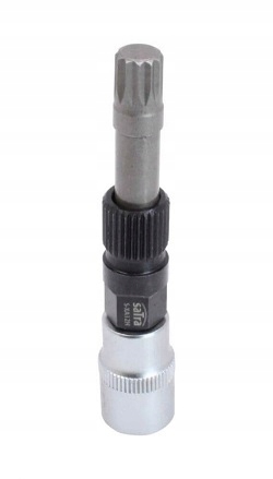- Генератор фіксується за допомогою гнізда з наконечником M10, а шків повертається за допомогою Шестигранна гайка на 33 зуба під гайковий ключ на 14 мм, розташований на хвостовику інструменту.