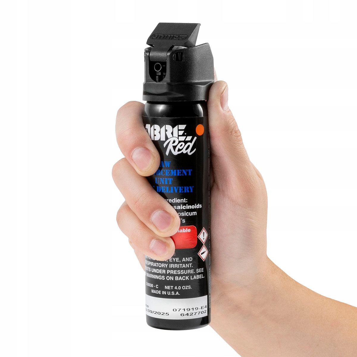 Промінь вихідного газу мало сприйнятливий до атмосферних факторів (вітер, дощ), що робить його точним, ефективним і, перш за все, безпечним для користувач b> засіб самозахисту. Крім того, контейнер оснащений захистом, який обмежує можливість неконтрольованого розпилення.