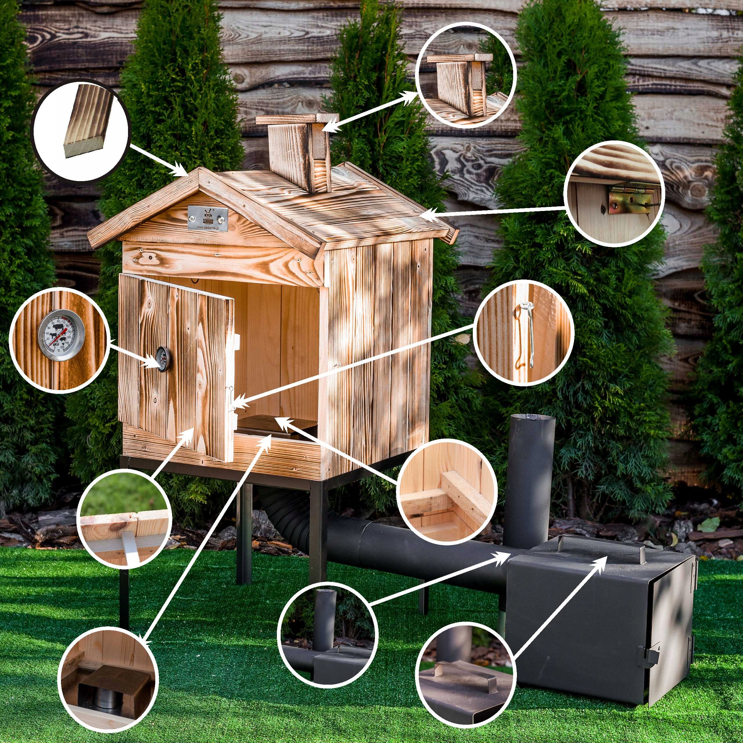 - Як один із небагатьох виробників, ми використовуємо гвинти для складання коптильні. Ми не виготовляйте коптильню за допомогою скоб, які послаблюють структуру.