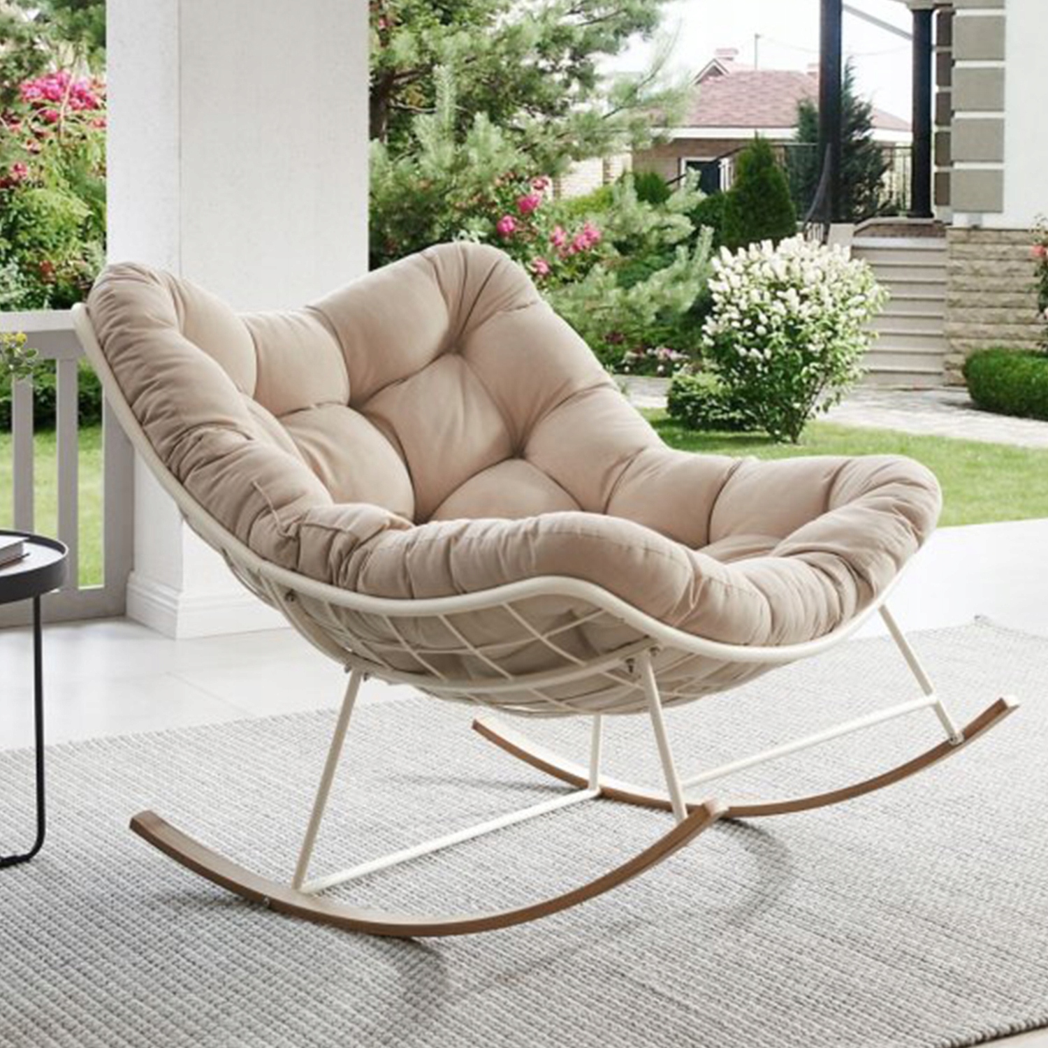 САДОВЕ КРІСЛО ДЛЯ ТЕРАСИ СИДІННЯ ДЛЯ ВІТАЛЬНІ КРІСЛО-КАЧАЛКА НА ПОЛОЗАХ КРЕМОВЕ