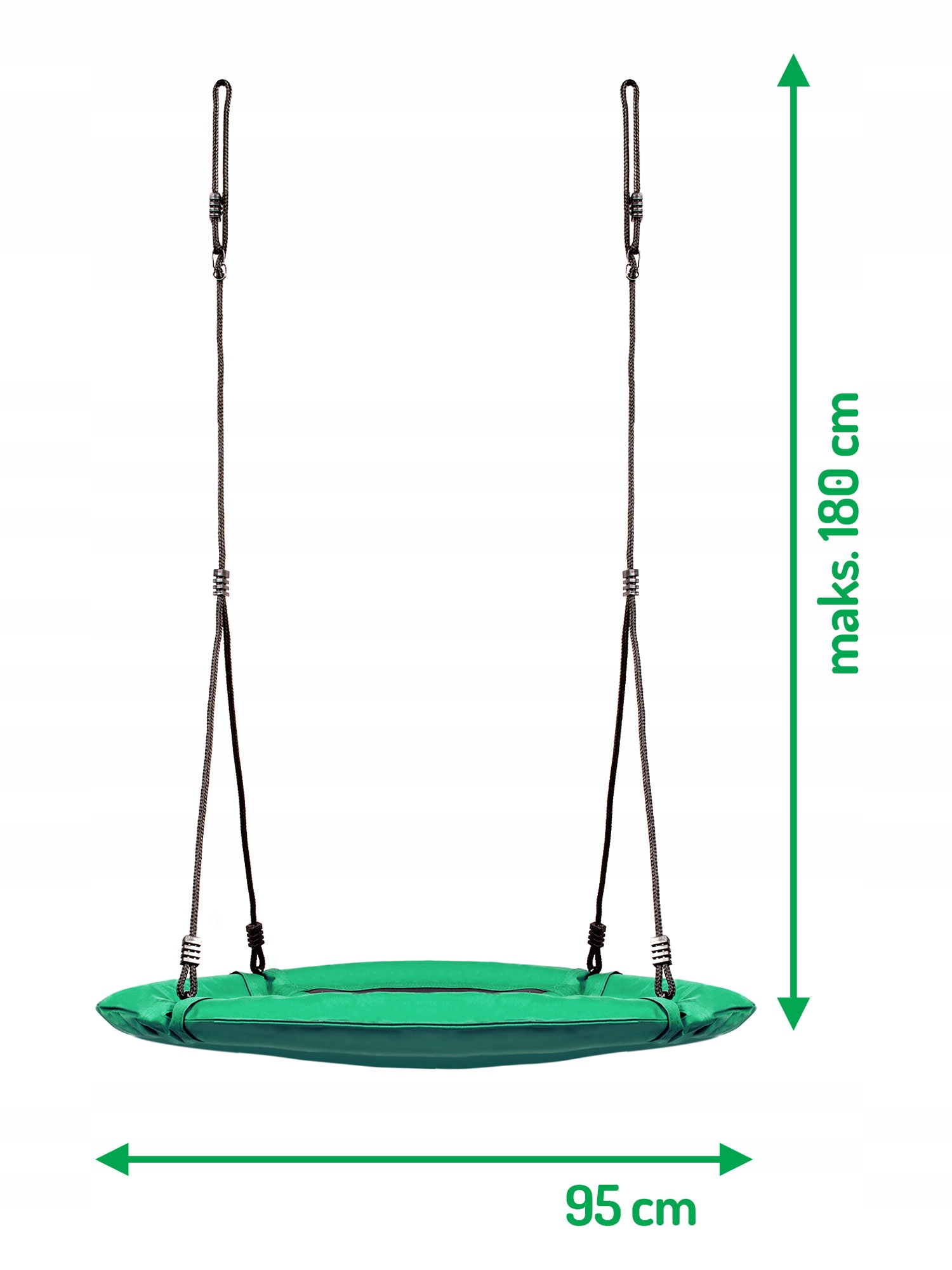 Гойдалка на сталева рама покрита м'якою захисною піною, виготовлена з міцного матеріалу з багаторазовою прошивкою та товстими підвісними тросами. Це забезпечує безпеку, стабільність і довговічність.