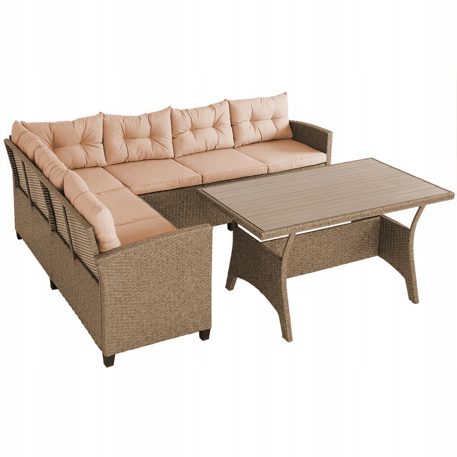 Садові меблі кутовий диван ротанг меблі для тераси бежеві подушки 16 шт.