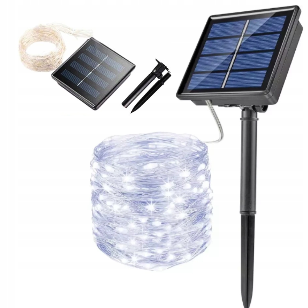 Садові світильники на сонячних батареях, провід 100 Led IP44 Холодний білий Сонячна гірлянда 10м
