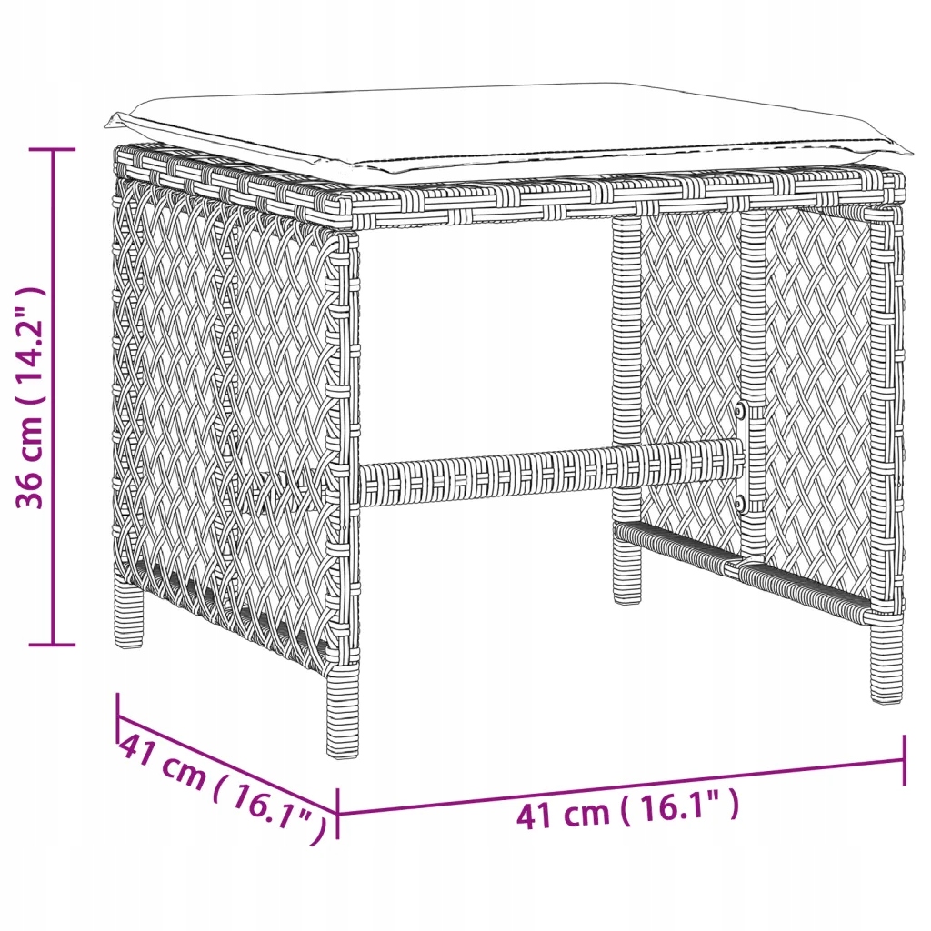 Садові табурети Rattan PE Світло -сірі 41x41x36cm + антрацитні подушки 40x40x2