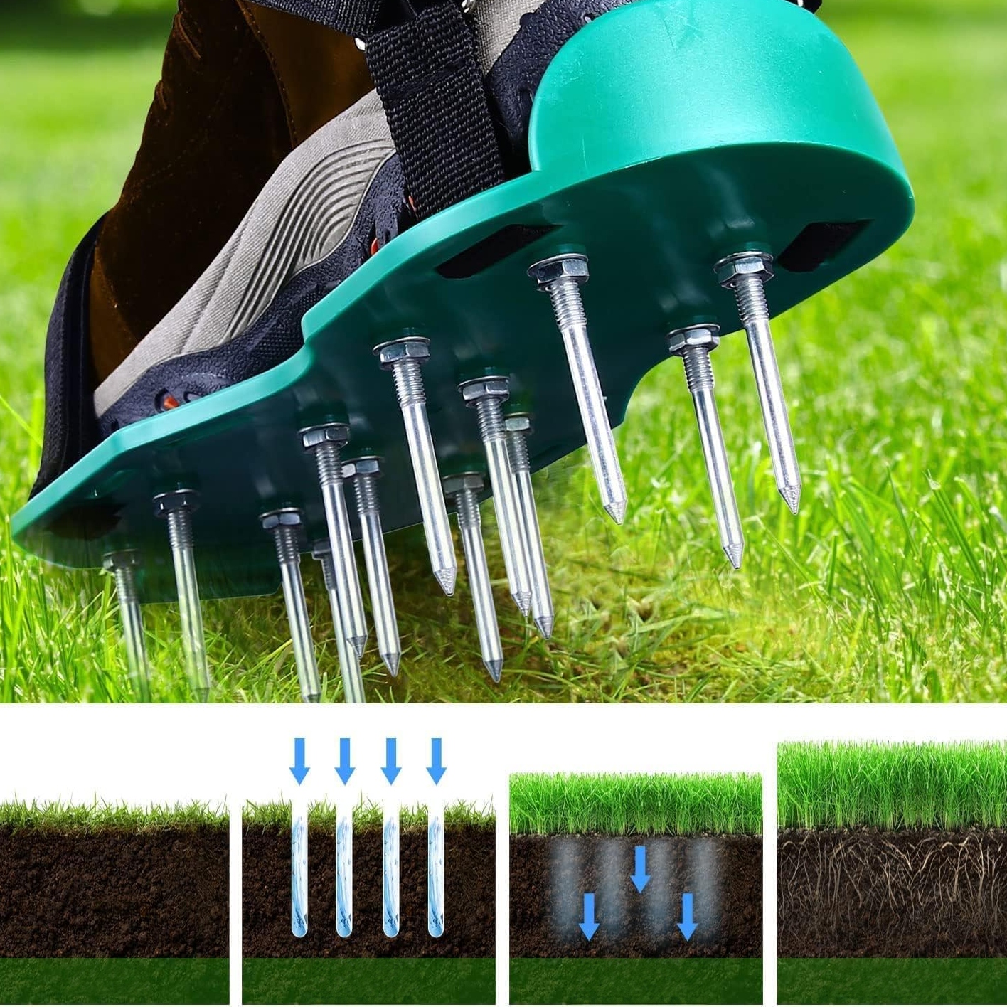 Завдяки довгим сталевим шипам, які використовуються в подушках, ґрунт ефективно розрізається, що забезпечує ефективну аерацію.