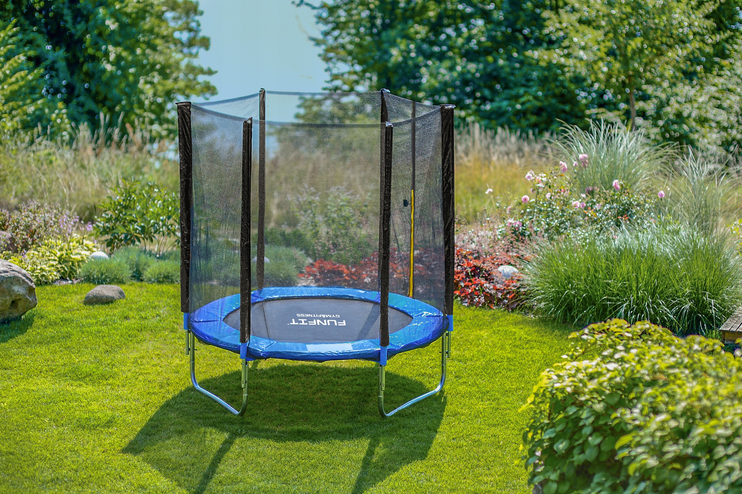 батут funfit - ідеальна пропозиція для активної забави у саду. Оснащений високою захисною сіткою (160 см) , забезпечує максимальну безпеку при стрибках. міцна конструкція та сталеві пружини гарантують стабільність та велику подушку. Максимальне навантаження батута до 90 кг , що робить його придатним і для дітей старшого віку. Вхід закріплений барвистою блискавкою , що полегшує його використання та підвищує безпеку.