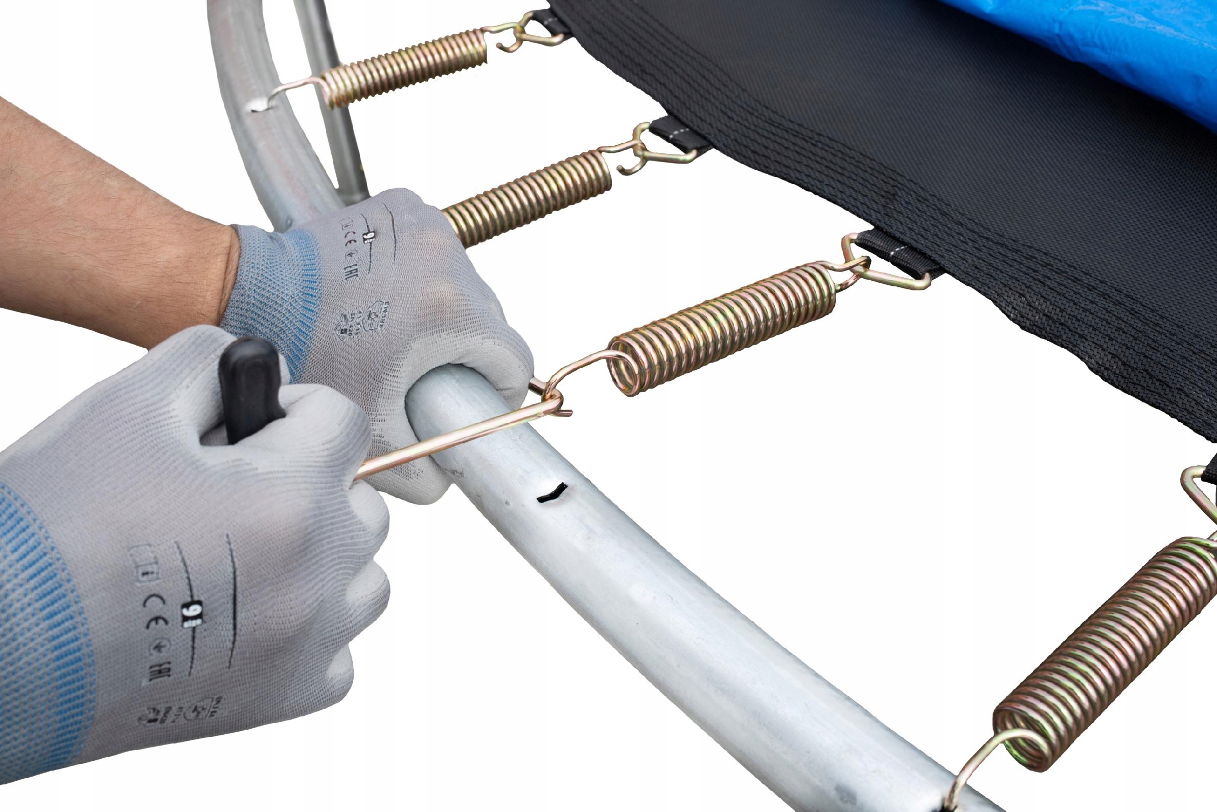 ✔️ Висока захисна сітка з тирилену. Крім того, він має блискавку з 2 пряжками безпеки, тому ймовірність випадкового падіння з батута зведена до мінімуму. Сітка стійка до складок, УФ-променів і стирання.
