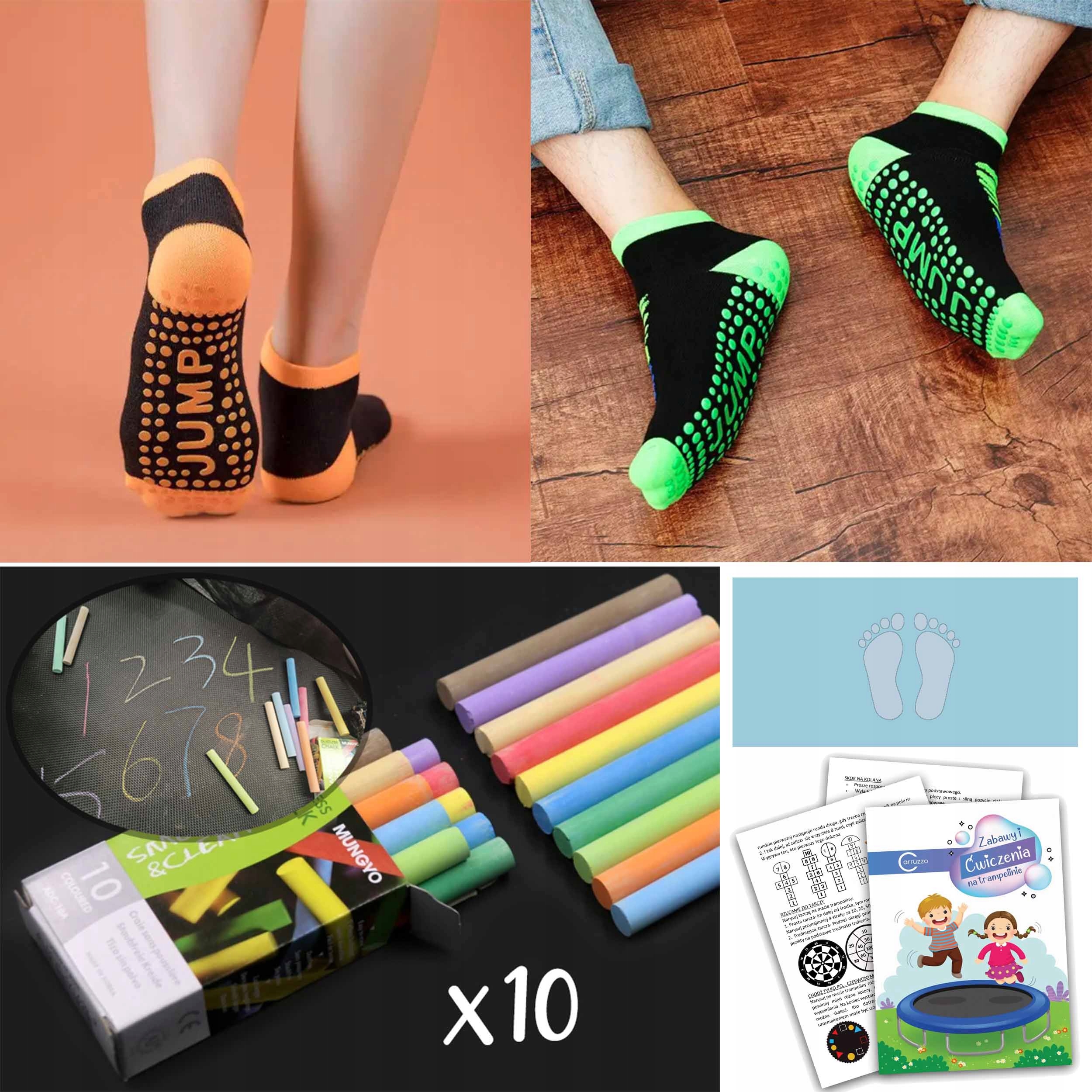- Дві пари протиковзких шкарпеток для стрибків (два розміри для дітей старшого та молодшого віку: розмір S для 3-5 років, довжина приблизно 14 см (помаранчеві) та розмір M для 6-10 років, довжина приблизно 17 см (зелений) b>