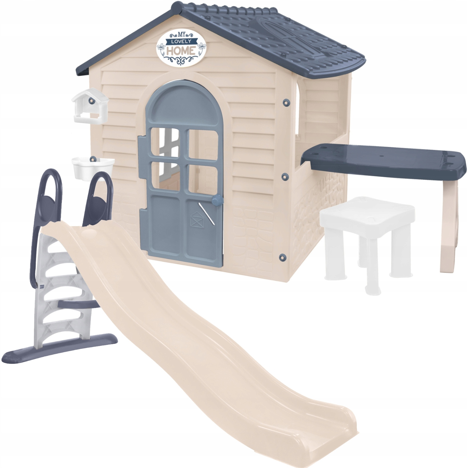 Садовий будинок, встановлений зі столом та табуретом + слайд