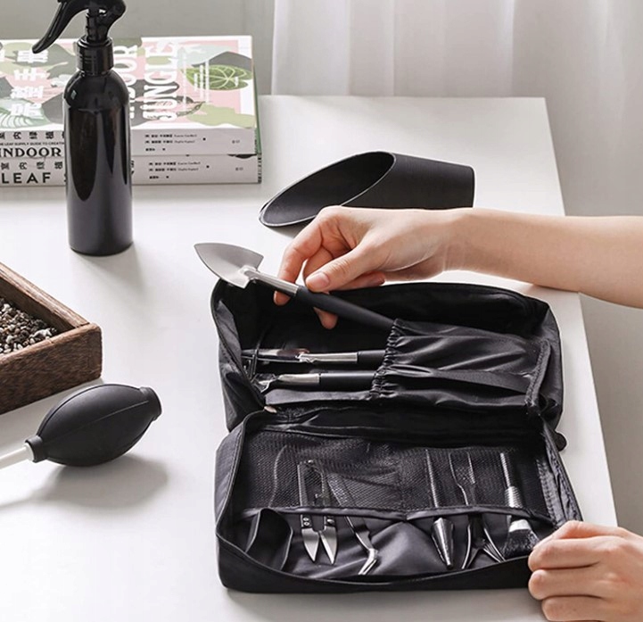 Ідеальне обладнання: 13-частинний набір початківців ідеально підходить для початківців та невеликих бонсай. 1 х колодка для заміни ґрунту та 1 х сумка для зберігання. Ця сумка забезпечує практичне зберігання інструментів.