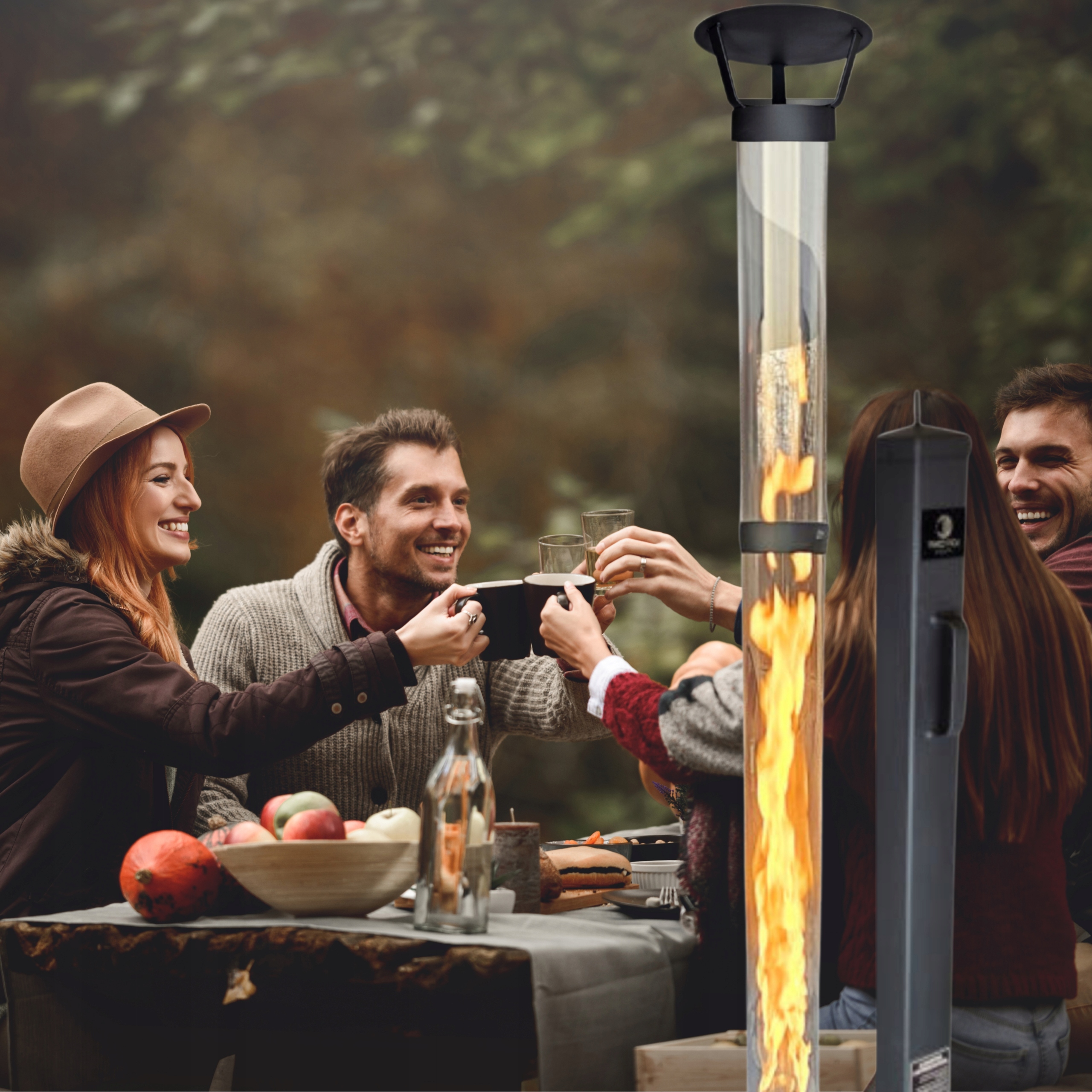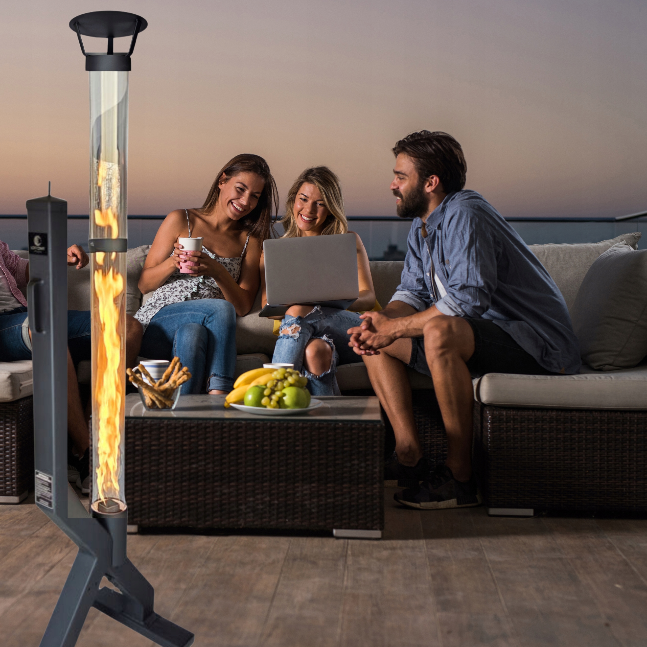Ідеально підходить для використання на терасі, веранді, патіо, зимовому саду чи альтанці, він створює унікальний ефект вогню та візуальне сяйво полум’я, що нагадує сучасний садовий факел.