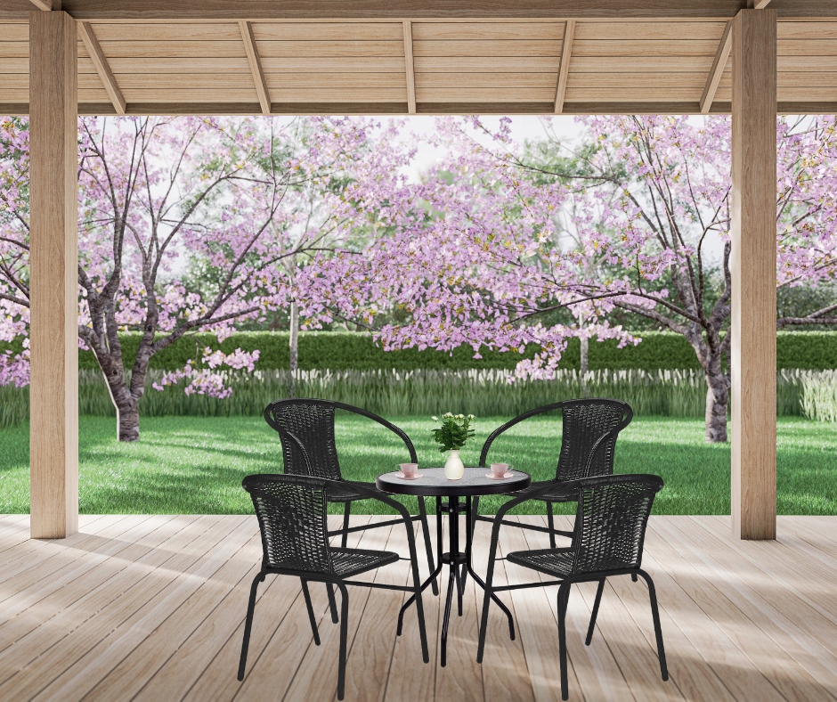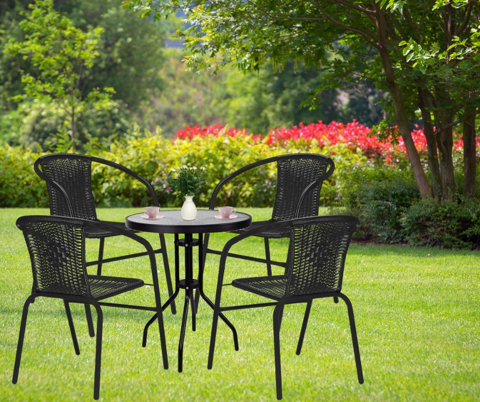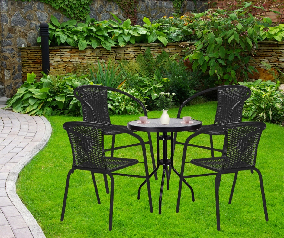 КОМПЛЕКТ САДОВИХ МЕБЛІВ 4+1 - СТІЛ ТА 4 СТІЛЬЦЯ, ТЕХНОРАТАН, МЕТАЛ, БАЛКОН ТЕРАСА САД