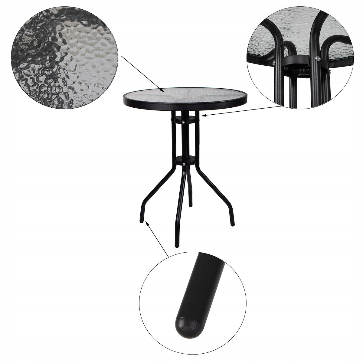 - Матеріал: метал/сталь з порошковим покриттям, загартоване скло, пластик, що імітує ротанг.