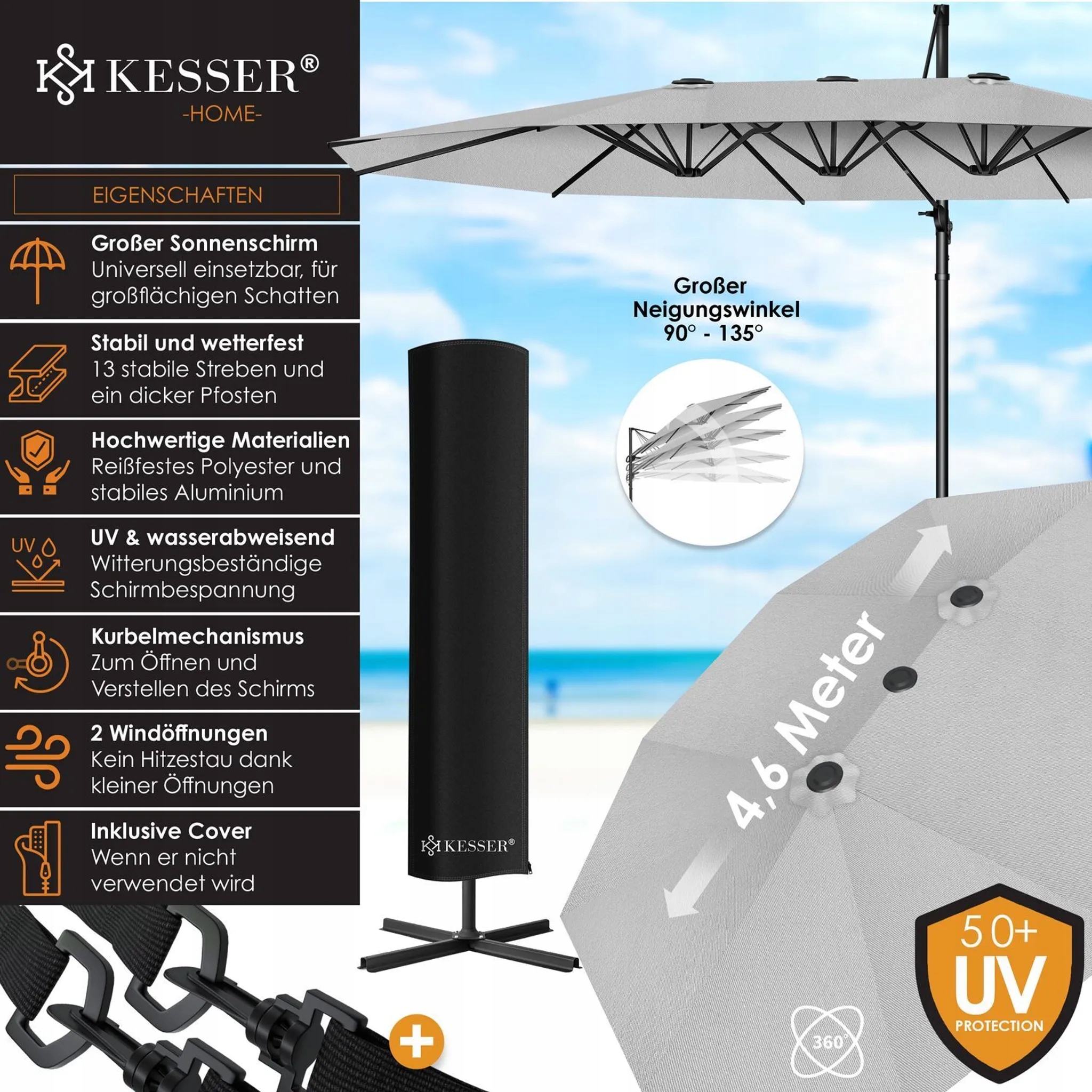 Kesser® - Садовий парасолька XL 460 × 270 см, світло -сірий, з кривошипом і підставкою