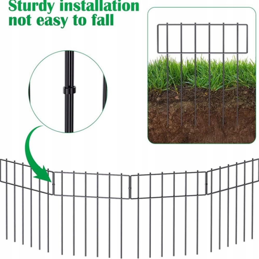Це бар'єрна паркан для тварин, захищає ваших маленьких тварин, таких як собаки/свині .... від копання під парканом і втечі, а також зупиняє деяких тварин/маленьких/середніх тварин, таких як шлюб -кролик, щоб пошкодити сад і двір. Він також може бути використаний як садівництво біля двору пейзажної огорожі, огорожі овочевого кордону та шлях огорожі собаки або краю газону.