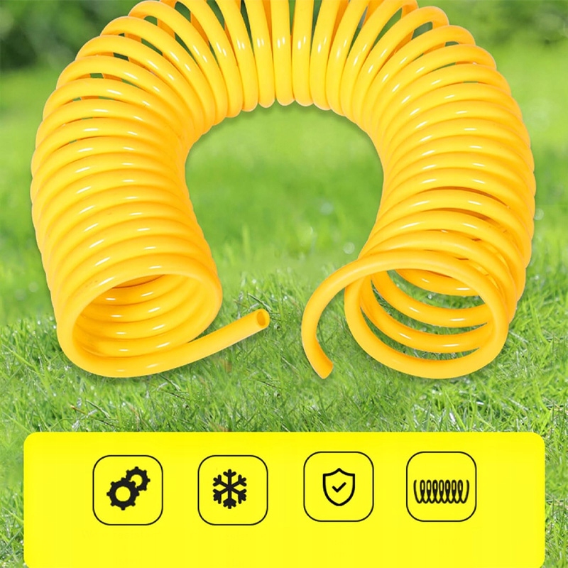 Цей шланг виготовлений з міцного матеріалу EVA, який характеризується стійкістю до зносу та морозу. Суцільний і легкий шланг може досягати довжини до 15 метрів/50 футів без деформації, навіть після багаторазового скорочення.