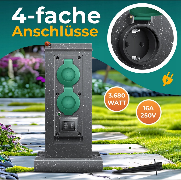 ✅ kesser Garden Power Socket - корпус, стійкий до ультрафіолетового випромінювання та погодних умов, кілометрів, щоб бути загнані в землю для ідеального використання, два режими, датчики -сутінки, 4 розетки з самостійним флаплом, Гнучка установка завдяки 3-метровому кабелю