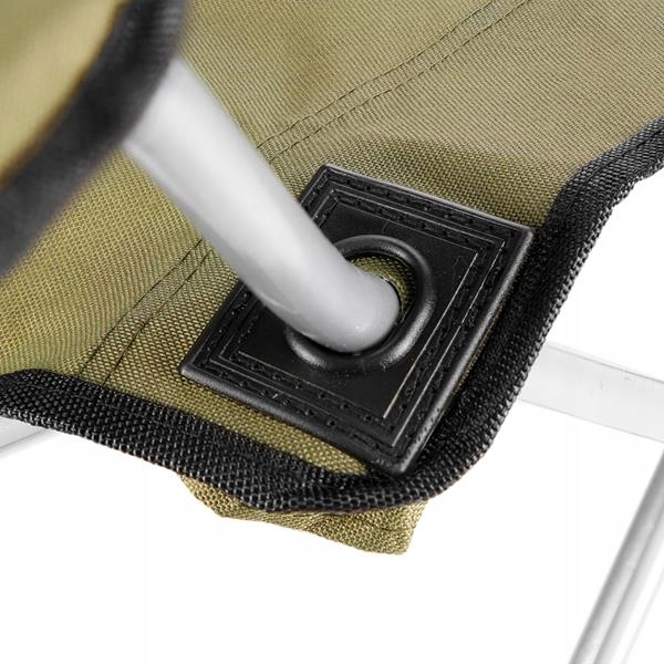 - це практичне крісло, яке буде працювати в будь -яких умовах і на всій місцевості. Сталеві тверді профілі діаметром 16 мм відповідають за його стабільність. Завдяки сильному дизайну та 600d Oxford Material, який дуже довговічний, прийнятне навантаження стільця до 110 кг. Доповнення -це ноги проти слизу, що захищає від ковзання. Складання, завдяки якому ми можемо легко взяти його в подорож. Це полегшить обкладинку, включену до набору, яка додатково захистить обладнання. Стілець легко складається і розгортається, а на обкладинці займає дуже мало місця, крім того, ви можете зручно кинути його на плече.