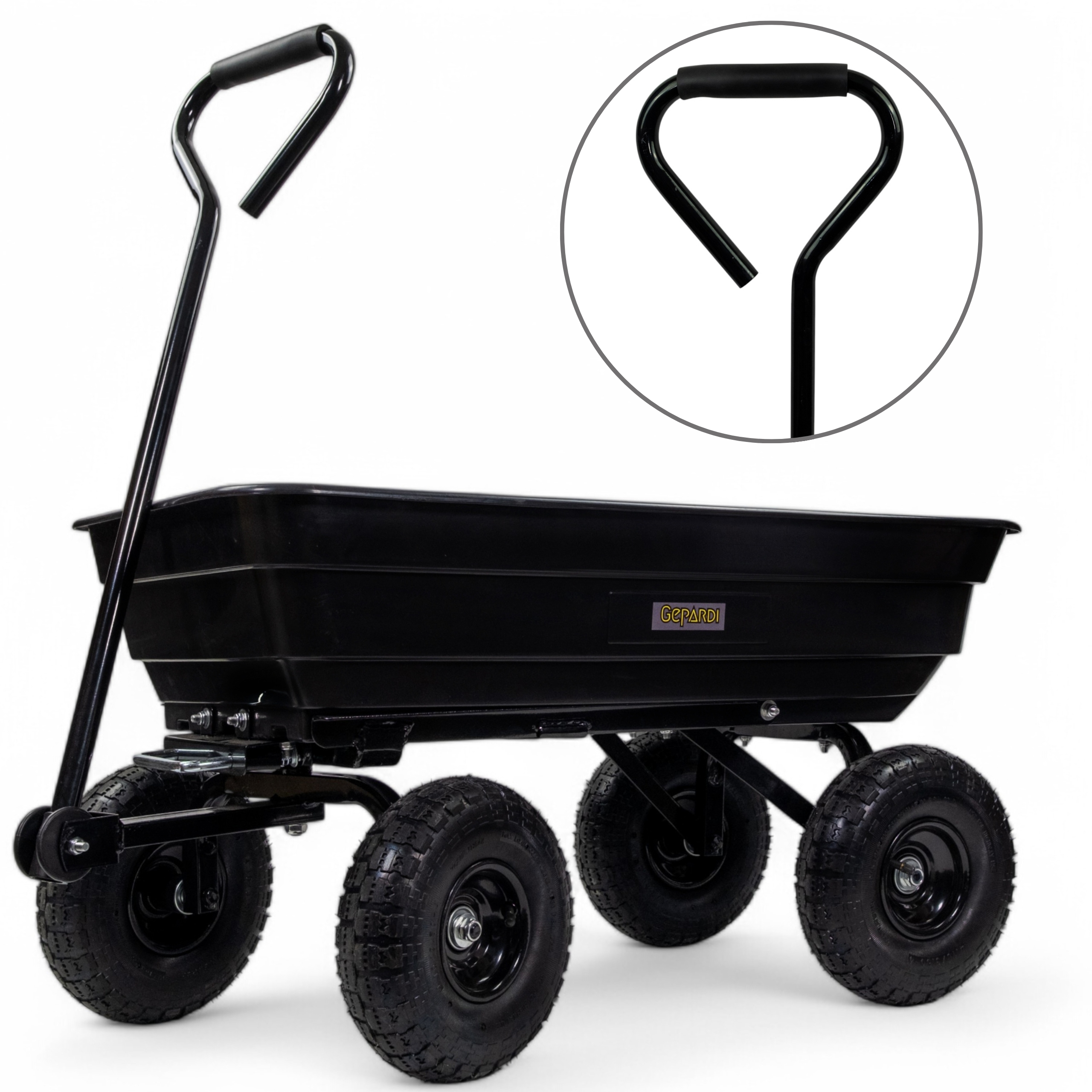 Завдяки великій потужності 95 літрів та вантажопідйомності до 250 кг Ви можете транспортувати ґрунт, каміння, деревину, садові інструменти або сумки для добрив.