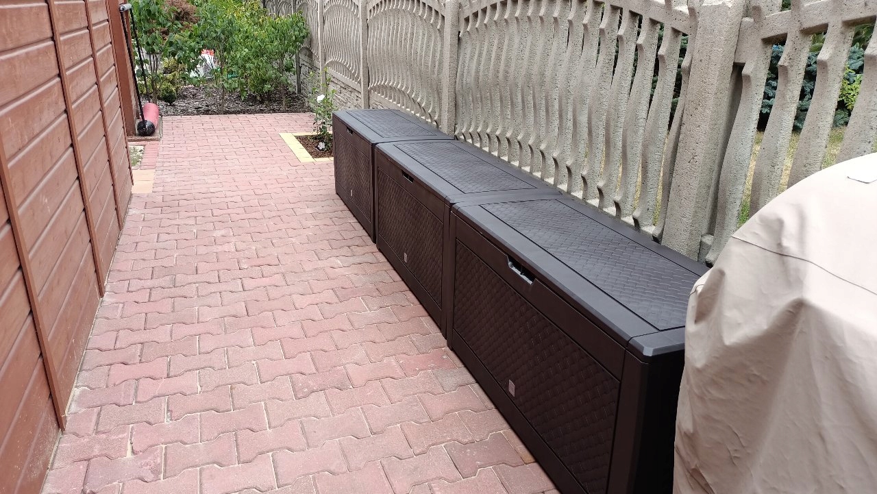 ??Садовий ящик Prosperplast Boxe Matuba - це практичне та містке рішення, яке дозволяє зберігати різноманітні предмети на відкритому повітрі, наприклад, садовий інвентар, садові подушки, іграшки та сезонні речі.