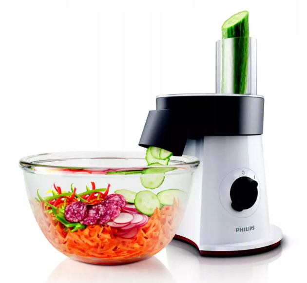 Свіжі, домашні салати та інше. Салатниця Philips нарізає, шаткує та нарізає кубиками овочі, сир, салямі тощо безпосередньо у вашій мисці, каструлі чи воку. Ви також можете нарізати картоплю на картоплю фрі за допомогою нарізного диска XL. Ви можете готувати салати та інші страви всього за кілька секунд.