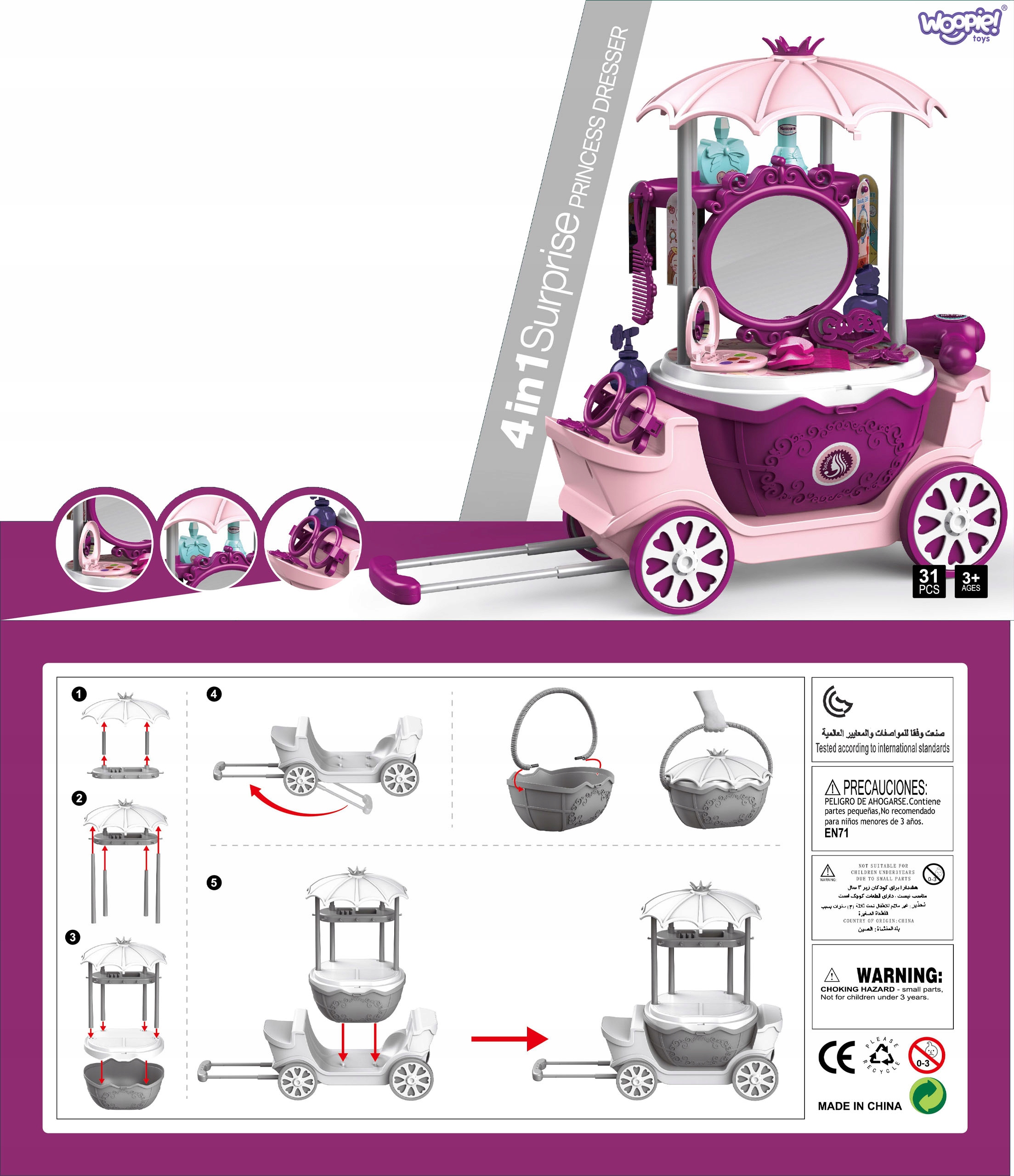 - ✔️ 4 в 1 - чотири цікаві функції: туалетний столик, коляска, валіза та кошик