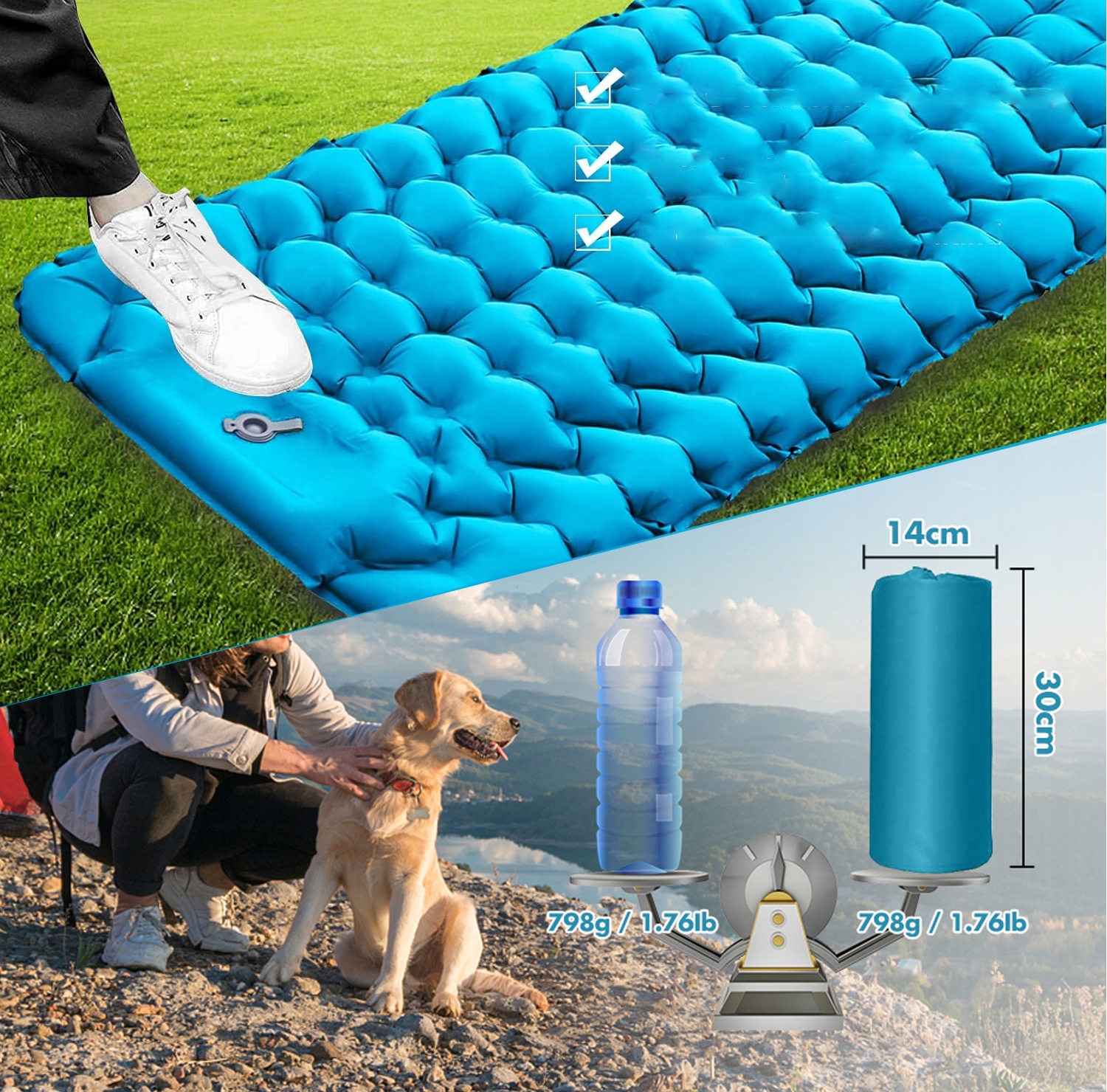 ✅ Простий у використанні, складаний і зручний. Ножний насос дозволяє повністю накачати великий спальний килимок за 1 хвилину простим натисканням.