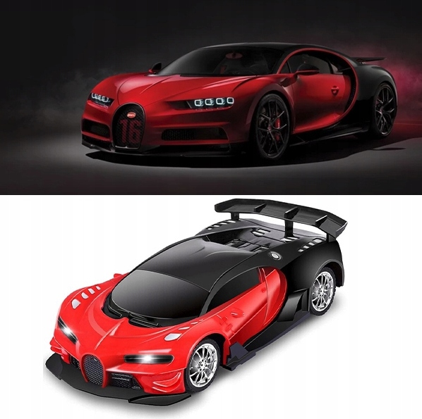 Модель автомобіля з дистанційним керуванням відтворює деталі справжній автомобіль. RC автомобіль є копією моделі Bugatti Chiron в масштабі 1:12. Під час руху вперед світлодіодні фари горять.