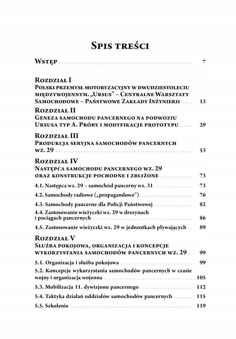 Монографія є спробою максимально широко висвітлити історію служби бронемашини wz. 29 у Війську Польському в 1930-х роках, починаючи від створення прототипу та його випробувань. Також торкнулася тема подібних до нього конструкцій (зокрема «агітаційних» автомобілів). Видання підготовлено на основі документів, що збереглися в польських архівах та інших джерелах.