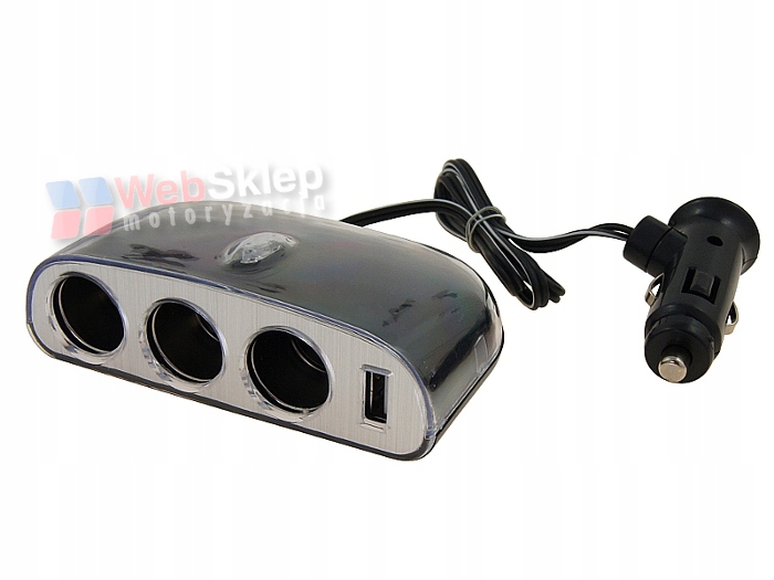 SAMOCHODOWY ROZDZIELACZ ZAPALNICZKI TRÓJNIK + USB ROZGAŁĘZIACZ 3 GNIAZDA