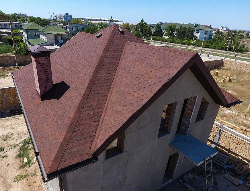 Бітумна черепиця стільникової форми (колекція GOTIK). Легке, елегантне покриття для даху, яке використовується на крутих дахах з ухилом понад 11°. Ідеальний матеріал для використання в якості покрівлі на односімейних будинках, дачних будинках і альтанках.