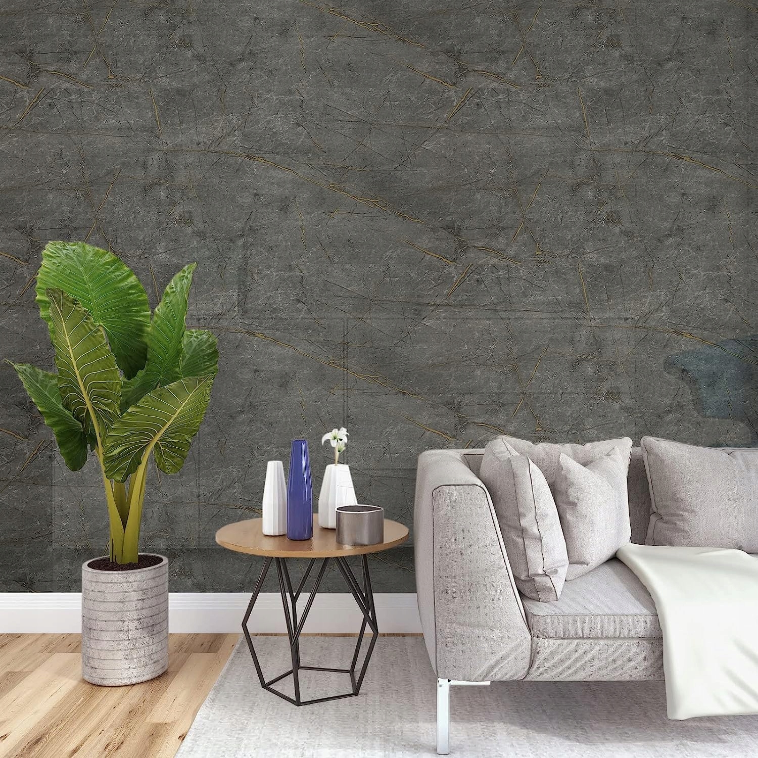 Мармурова вінілова плівка 60x500 см, реалістична темно-сіра мармурова текстура, прикрашена золотою філігранню в центрі, трохи розкішний і свіжий стиль, елегантний.