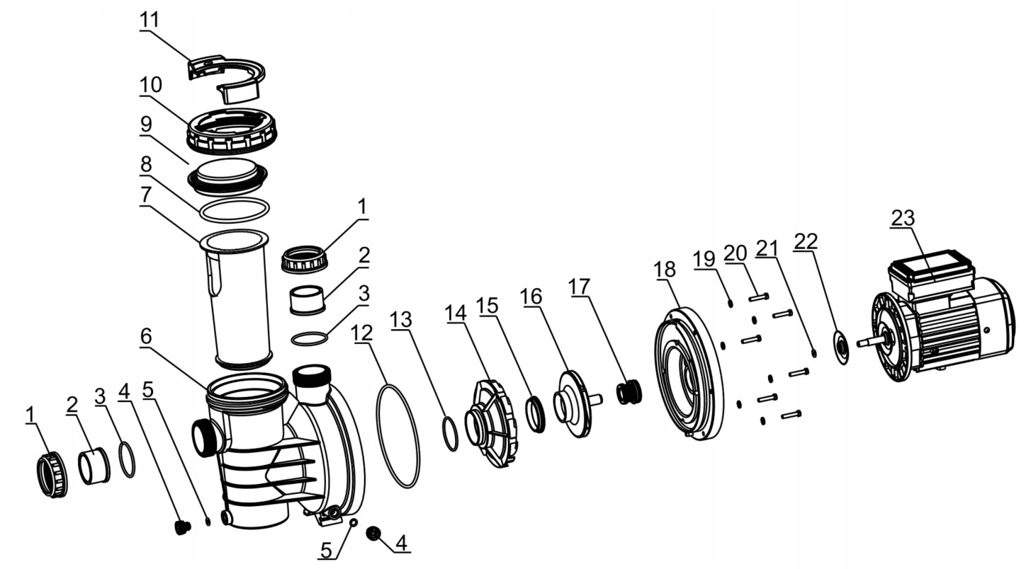 Насос для басейну SWIM 025 IBO з фільтром попередньої обробки. це самовсмоктуючий насос, оснащений попереднім фільтром, який вловлює листя та інший бруд, навіть волокнистий. Розрахований на безперервну роботу, тому одним з ключових елементів пристрою є асинхронний двигун, оснащений самозмащувальними шарикопідшипниками та зовнішньою вентиляцією. Це однофазний агрегат з напругою живлення 230В і потужністю 0,37 кВт, з вбудованим конденсатором і термозахистом для захисту від перегріву. Максимальна продуктивність, яку досягає насос, становить 195 л/хв, а висота підйому - 7 м. Розмір всмоктувального і нагнітального отворів - 2".