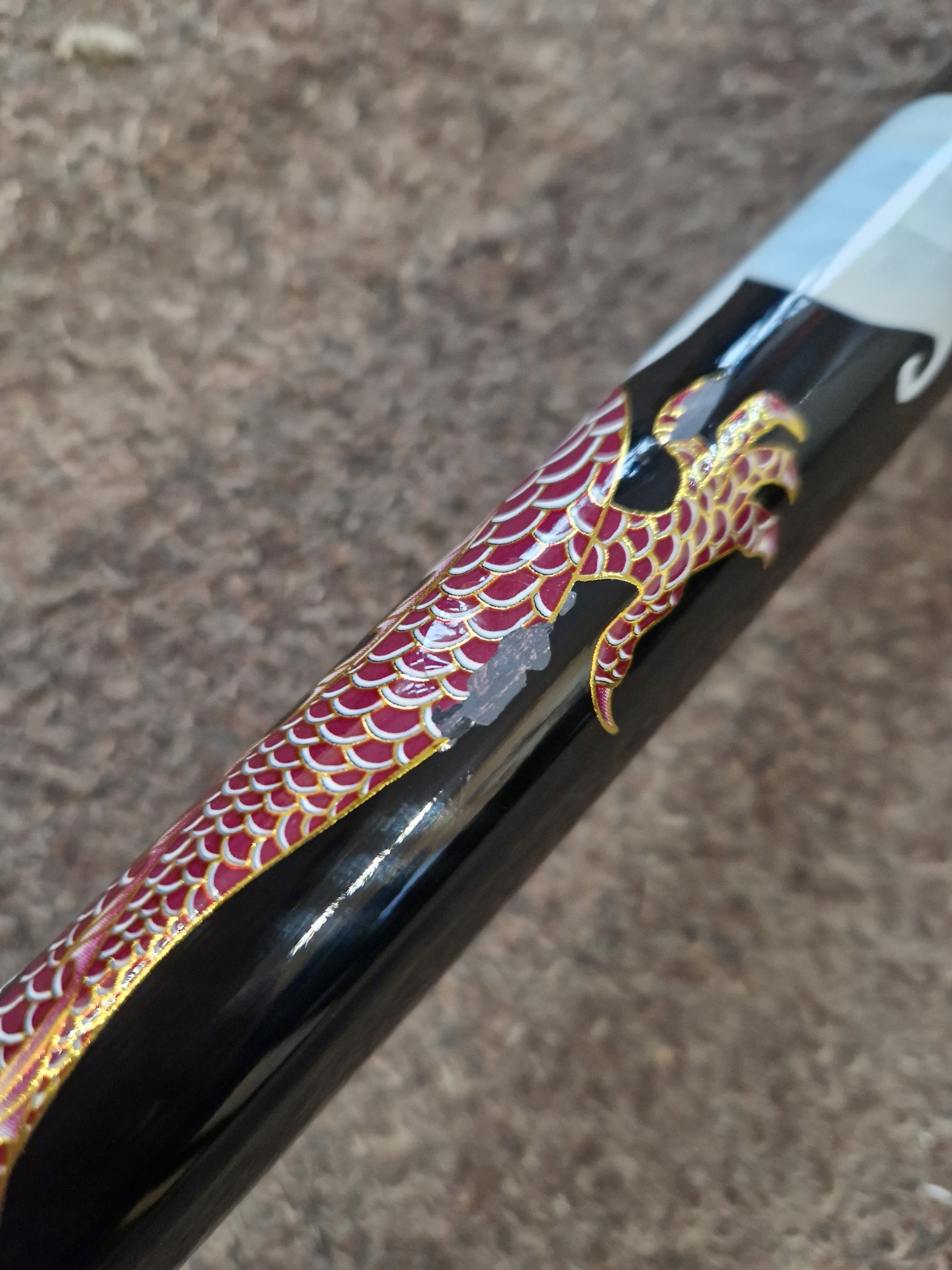 ПІХНИ/ САЯ: тверда деревина - лакована бавовняна тасьма (сагео) НА ПХОВАХ КРАСИВИЙ МОТИВ ДРАКОНА
