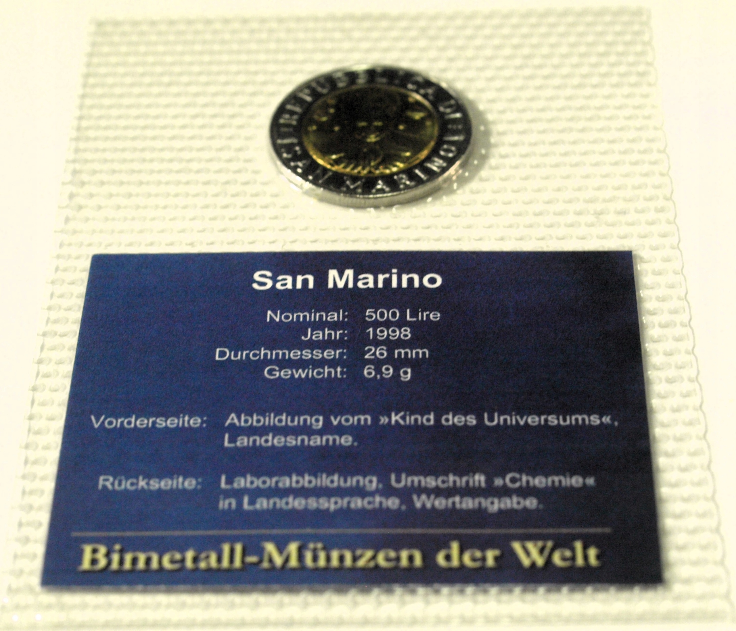 Сан-Марино 500 лір 1998 Chemistry Chimica Chemistry блістер. Оригінал. ПЕРЕВІРІТЬ ІНШІ АУКЦІОНИ - ЗБИРАЙТЕ РІДКІСНІ ЦІННОСТІ З НУМІЗМАТО!