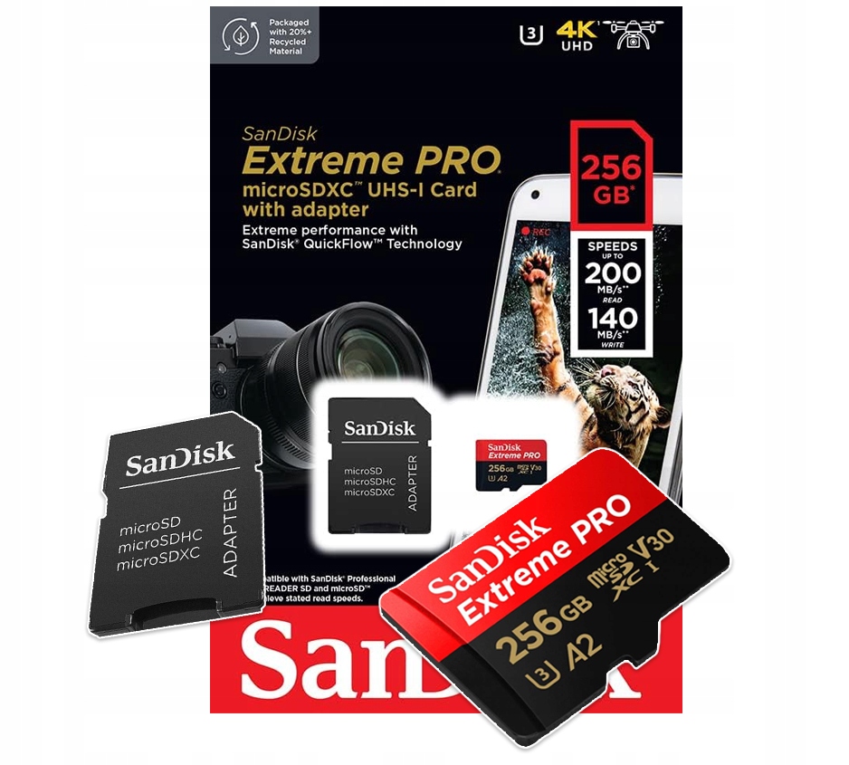 Sandisk Extreme Pro 256 Гб MicroSDXC UHS-I U3 200 Мб/с +карта пам'яті адаптера