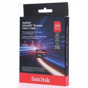 Sandisk MicroSDXC Express 256GB V30, U3, UHS-I, CL.10, R650MB/S, W210MB/S h1> - Sequential reading speed up to 880 Mb/s and sequential recording up to 650MB/S