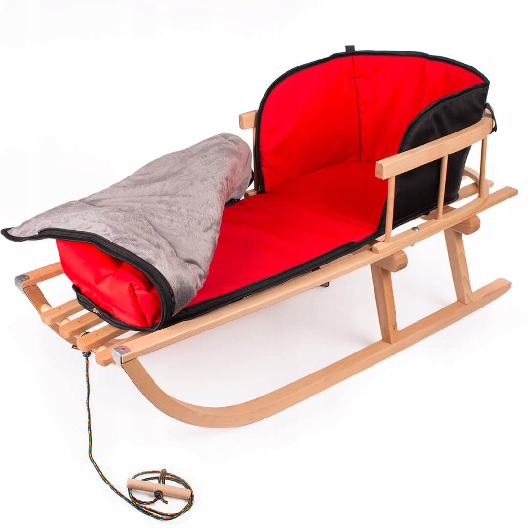 Дерев’яні сани зі спальним мішком і спиною - будьте готові до зими!