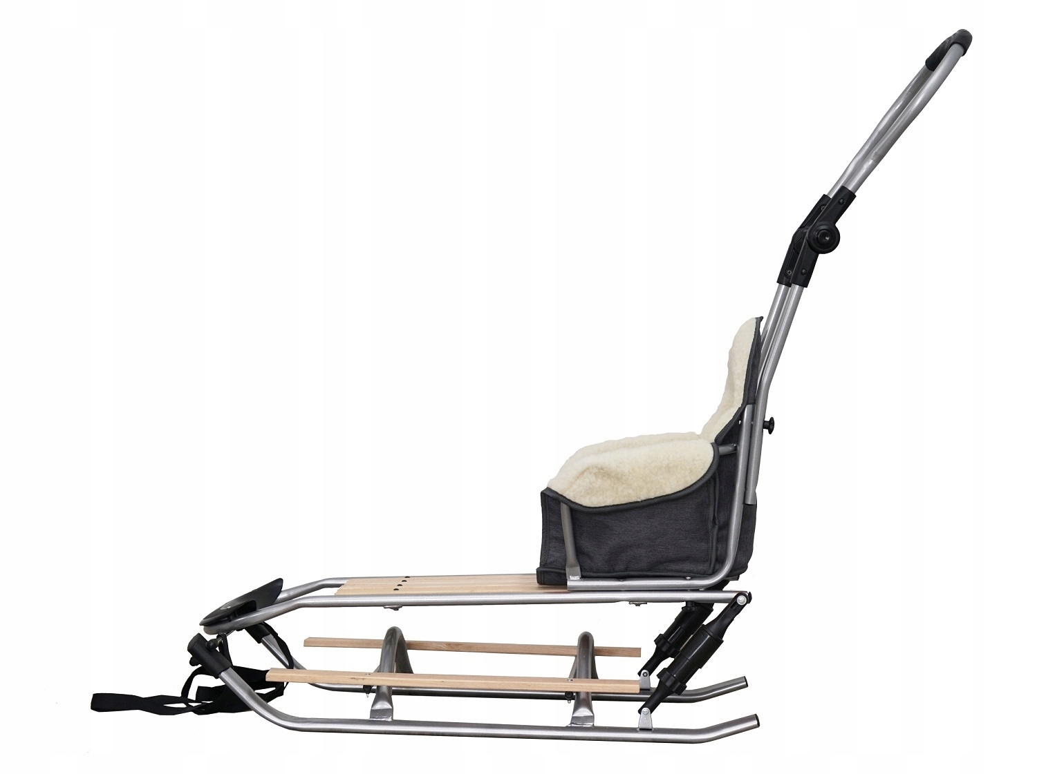 - Санки зі спинкою та ручкою для штовхання з металевої конструкції