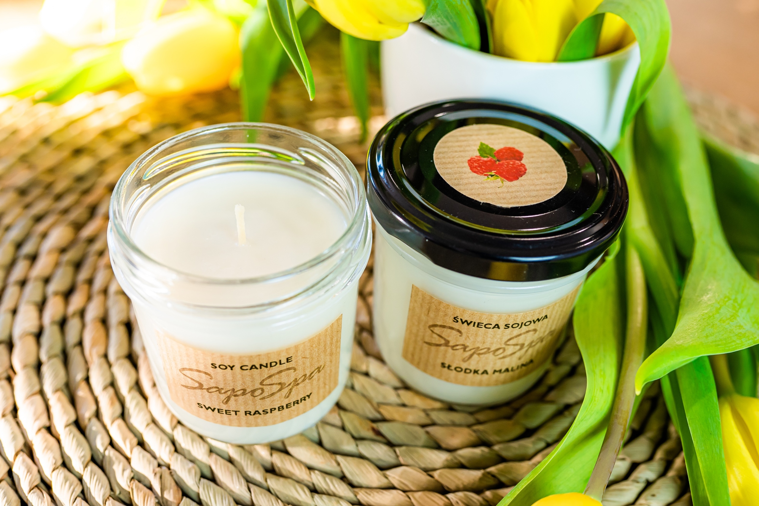 Свічка з соєвого воску ручної роботи з малиновою олією.