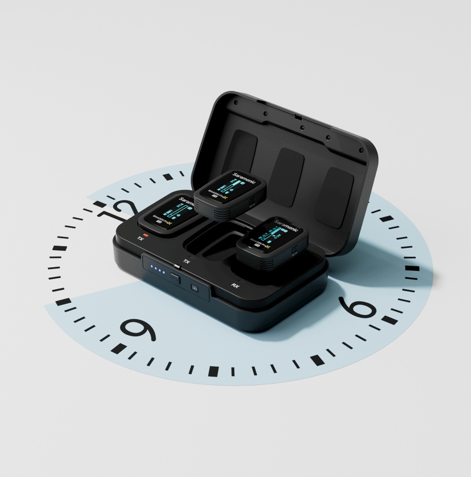 Повністю заряджений комплект для бездротової передачі звуку Saramonic Blink500 ProX B2 забезпечить 10 годин безперебійної роботи зі звуком. За цей час ви можете успішно записати кілька епізодів вашої програми YouTube, взяти велике інтерв’ю чи репортаж на цілий день.