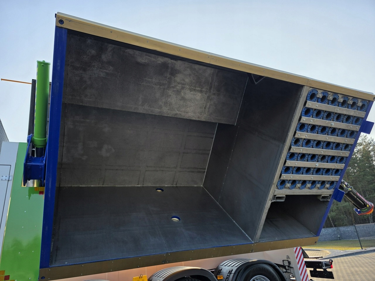 Thanks to the hydraulic lift, the user can empty the container to the tipper,