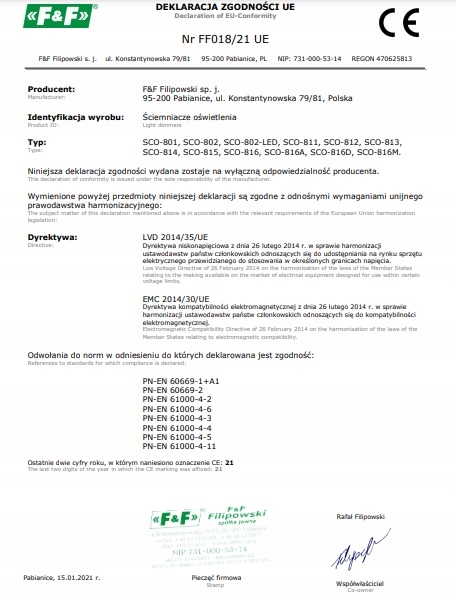Через велику різноманітність тьмяних конструкцій, світлодіодні світильники можуть, у рідкісних випадках, трапляється, що вибрана лампа не буде працювати належним чином із світлодіодним димром SCO-802. Типові симптоми таких випадків включають: низький діапазон регуляції та світлову фібриляцію. У зв'язку з вищезазначеним рекомендується провести тест перед встановленням тьмяного .
