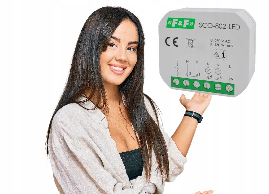 Універсальний освітлюючий диммер під керівництвом SCO-802 розроблений для регулювання яскравості тьмяності джерел тьмяного освітлення1, зокрема світлодіодного освітлення, до 150 В2. Світлодіод