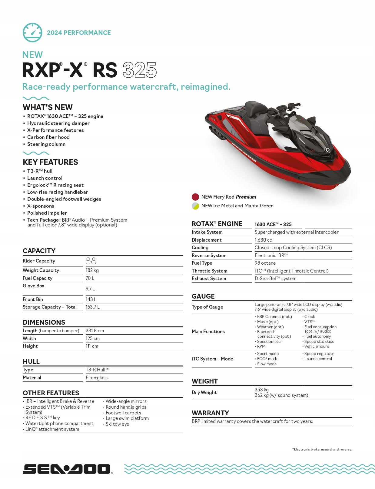 We are an authorized dealer from BRP, Sea Doo and Can Am h1> at today's announcement I present: h1> Sea doo doo RXP-X RS 325 (Tech Package)