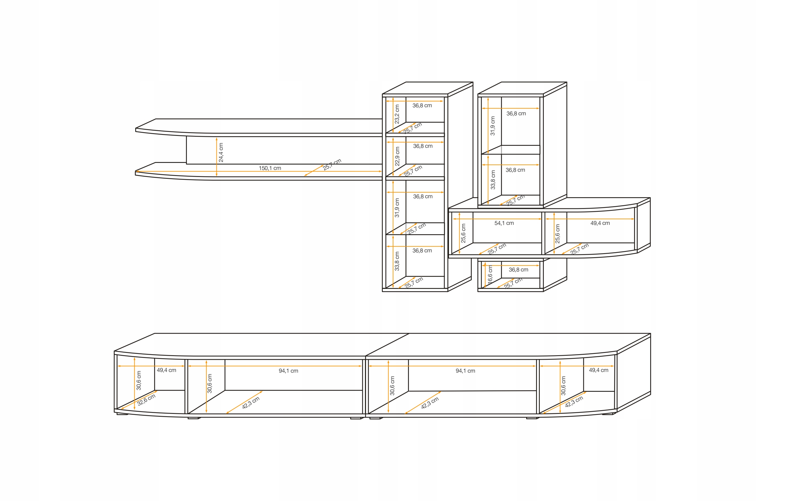 - 2x Тумба під ТВ з кришкою, одне відділення позаду, дверцята з вигнутою передньою частиною. дверцята та кришки відкриваються одним клацанням.