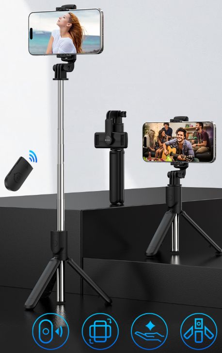 Selfie Stick має вбудований штатив Функція штатива забезпечує стабільне розташування телефону.