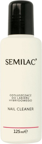 Semilac Nail Cleaner - знежирювач, який чудово видаляє тонкий липкий шар, який утворюється після затвердіння гібридного лаку, топ-коуту або гелю Semilac в УФ та УФ LED лампі . Також ідеально підходить як засіб для знежирення натуральної нігтьової пластини перед нанесенням манікюру.